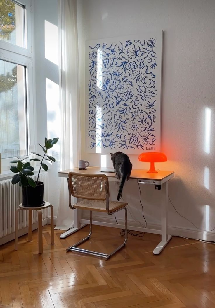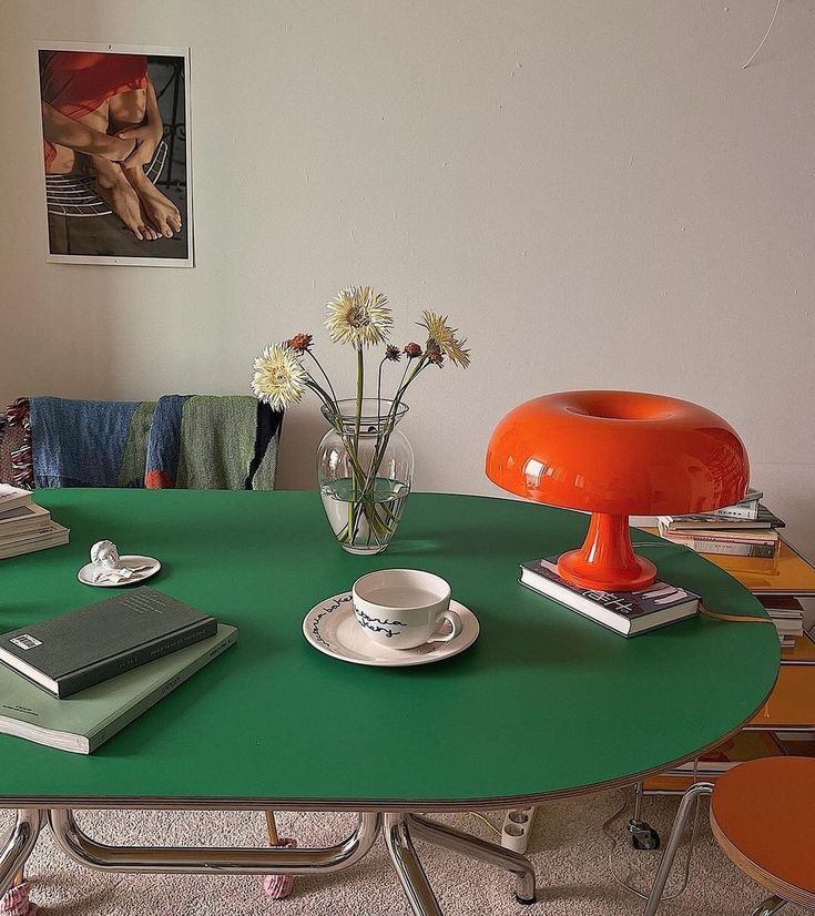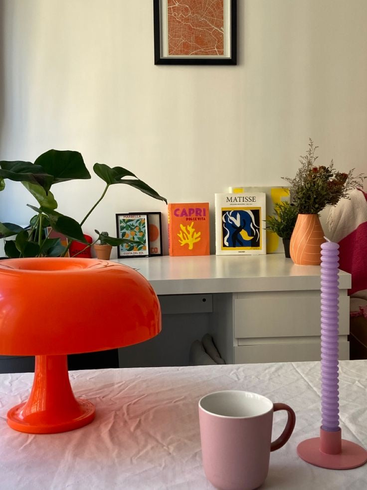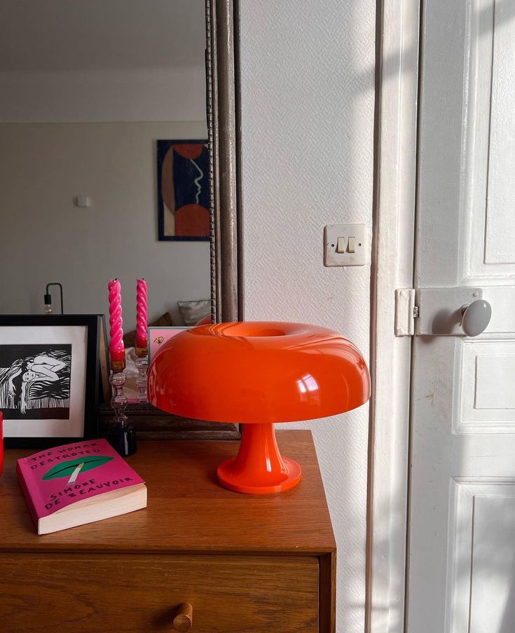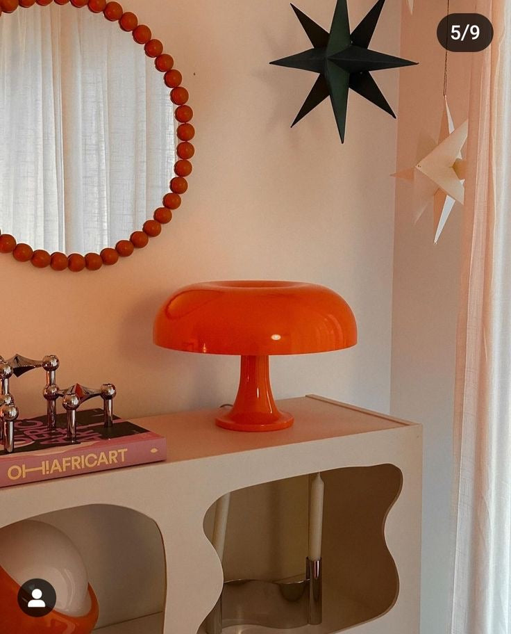 La lámpara Nesso es un ícono del diseño de mediados del siglo XX, especialmente conocida por su aspecto futurista y elegante. Fue diseñada en 1967 por Giancarlo Mattioli y el Grupo Artemide. Nuestra lampara es una inspiración realista de este ícono de los años 60 y su forma está inspirada en un hongo, con una base y un difusor anchos y curvos que difunden la luz de manera uniforme. Fabricada en plástico ABS, un material innovador para la época, esta lámpara es reconocida por su acabado liso y brillante en colores como el blanco y el naranja.